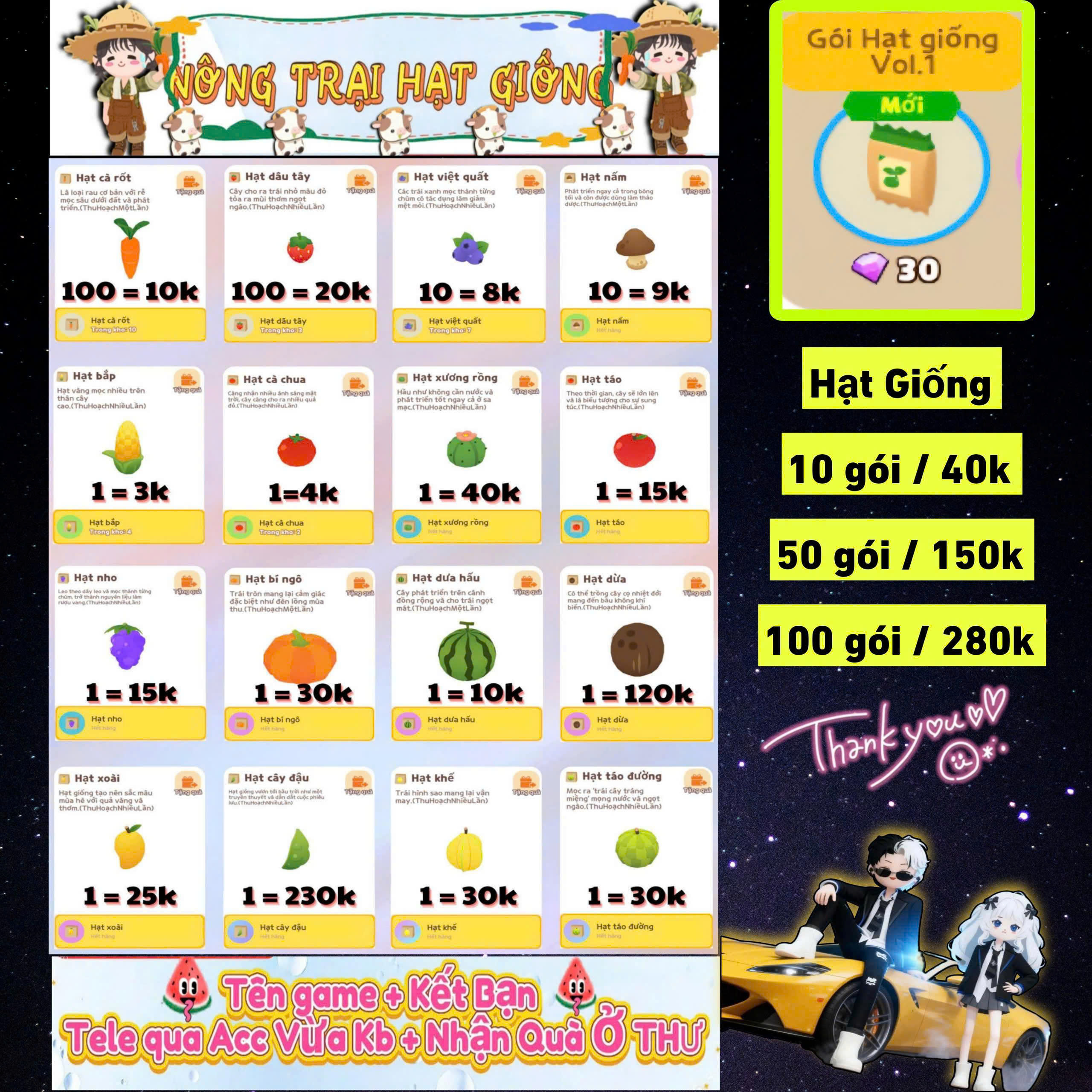 ShopThienPT.com chuyên cung cấp tài khoản Play Together chất lượng, đa dạng mức giá phù hợp với mọi nhu cầu, ngoài ra shop còn nhận dịch vụ cày thuê uy tín, đảm bảo nhanh chóng an toàn. Mua Acc Play Together với nhiều loại tài khoản VIP, full đồ, sẵn sàng chiến ngay. Dịch vụ cày thuê nâng cấp, kiếm tiền sao, hoàn thành nhiệm vụ theo yêu cầu. Hỗ trợ nhiệt tình với đội ngũ tư vấn 24/7, giao dịch nhanh gọn, uy tín giá rẻ, bảo hành trọn đời, nhiều minigame event hấp dẫn.